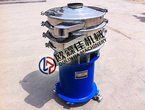 1層式旋振篩安裝1個目數(shù)的篩網(wǎng)(例80目),有兩個排料口(上排料口排粗料,下排料口排細料),依次2層安裝2個目數(shù)的篩網(wǎng)(例80目、100目)三個排料口,上圖為3層旋振篩,可同時篩分出四種大小不同規(guī)格的物料。